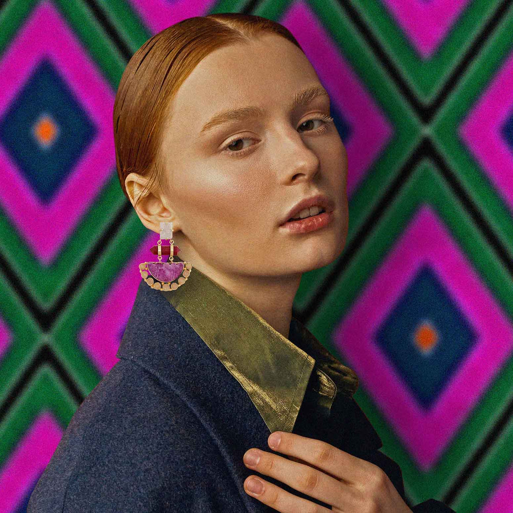 Brincos c/ Padrão Verde & Rosa c/ Franjas