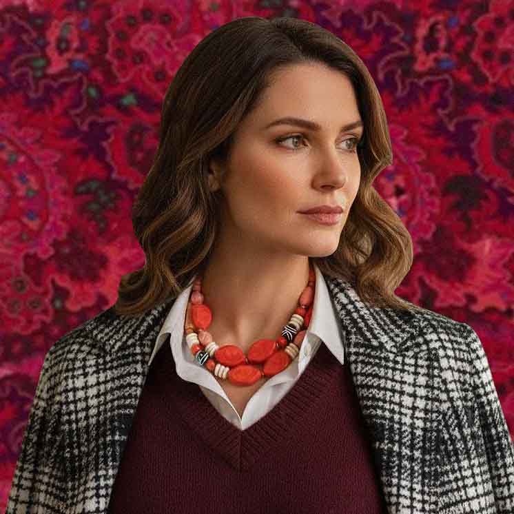 Colar de Contas Checas Vermelhas & Pérolas Naturais
