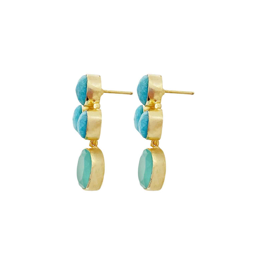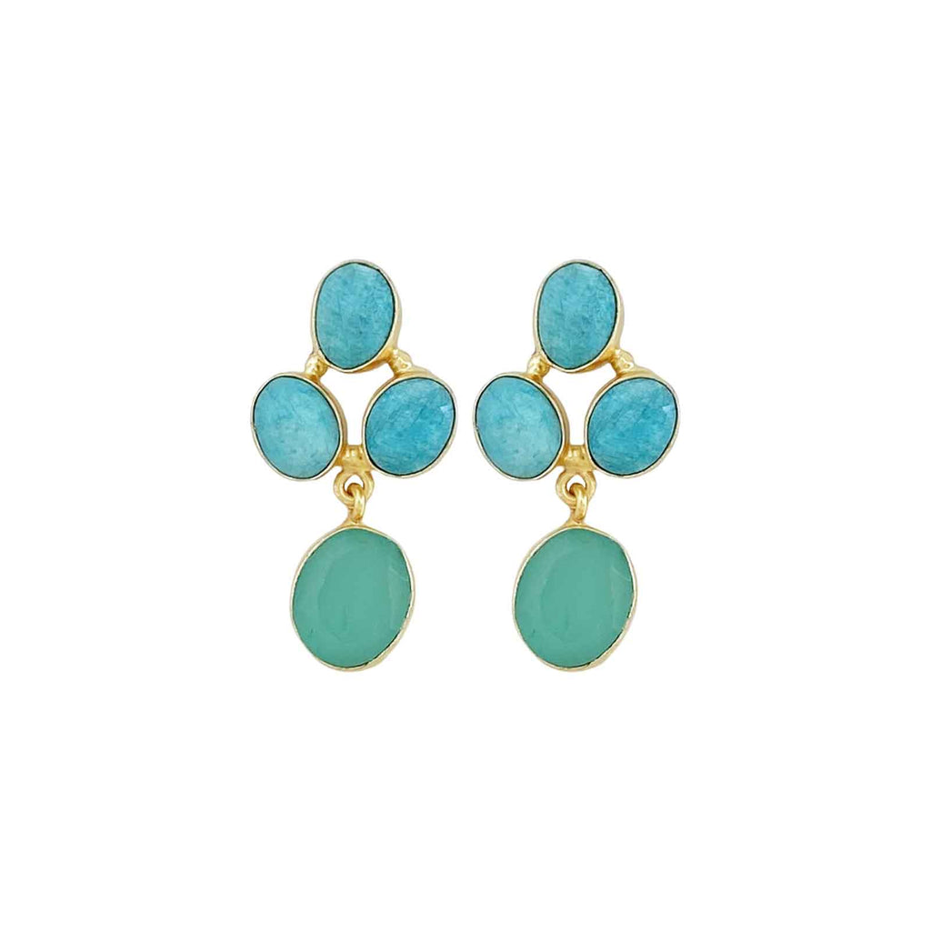 Argolas Douradas c/ Calcedônia & Amazonita & Pedra da Lua